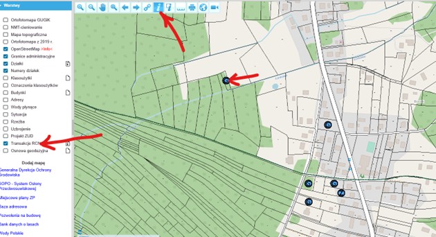 - ceny transakcji prezentowane są na portalu mapowym Powiatu Brzeskiego – po włączeniu warstwy Transakcje RCN i wybraniu z menu funkcji „i” należy kliknąć na mapie w ikonę transakcji.
